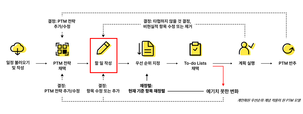 - This project examines Personal Task Management (PTM) not simply as recording schedules, but as an activity through which people create order, adjust priorities, and build a sense of control within changing everyday life. Based on this perspective, it redefines the limitations of existing digital task management tools in terms of personalization and flexibility.