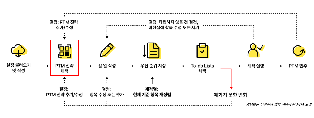 - Through a review of prior research, user interviews, and a comparative analysis of existing apps, the project derived design directions for a PTM tool that incorporates personalized prioritization, and proposed a tool model that allows people to flexibly reorganize plans in response to changing daily conditions.